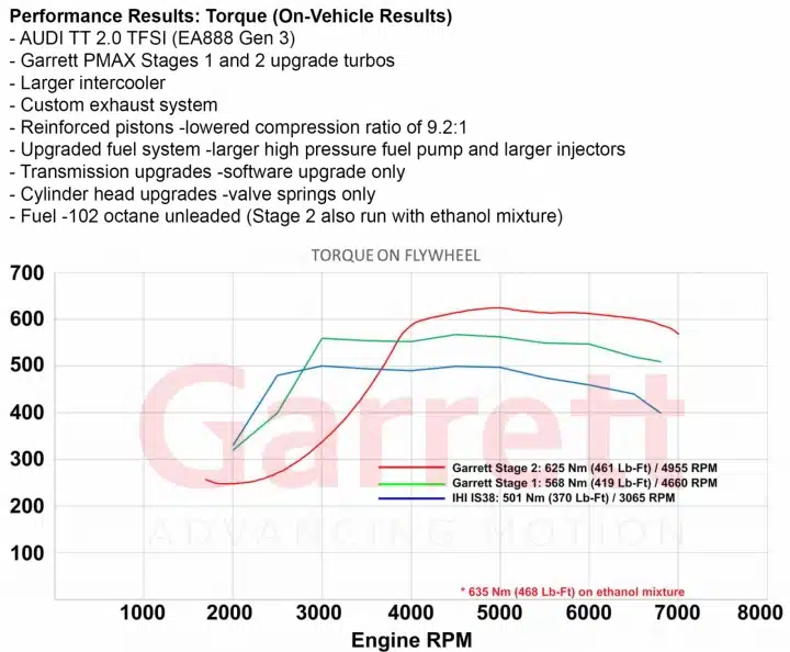 Le turbo-compresseur d’amélioration Garrett PowerMax™ pour les plateformes de moteurs Volkswagen, Audi, Seat & Skoda 2.0L TSI (EA888) est conçu pour augmenter les performances du moteur tout en respectant les spécifications d’installation OEM. Ce turbo d’amélioration maximise l’efficacité et le flux d’air par rapport au turbocompresseur OEM. La roue de turbine en alliage Mar-M résistant aux hautes températures et les boîtiers de turbine à double flux en acier inoxydable sont classés pour résister jusqu’à 1050° C. Ce turbo est entièrement assemblé avec un actionneur électronique calibré et des composants auxiliaires pour une adaptation OEM directe.