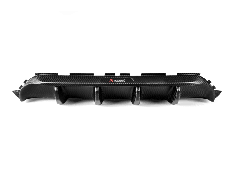 Ce diffuseur arrière en fibre de carbone – très brillant, est livré en rouge/blanc Logo d’Akrapovič.
