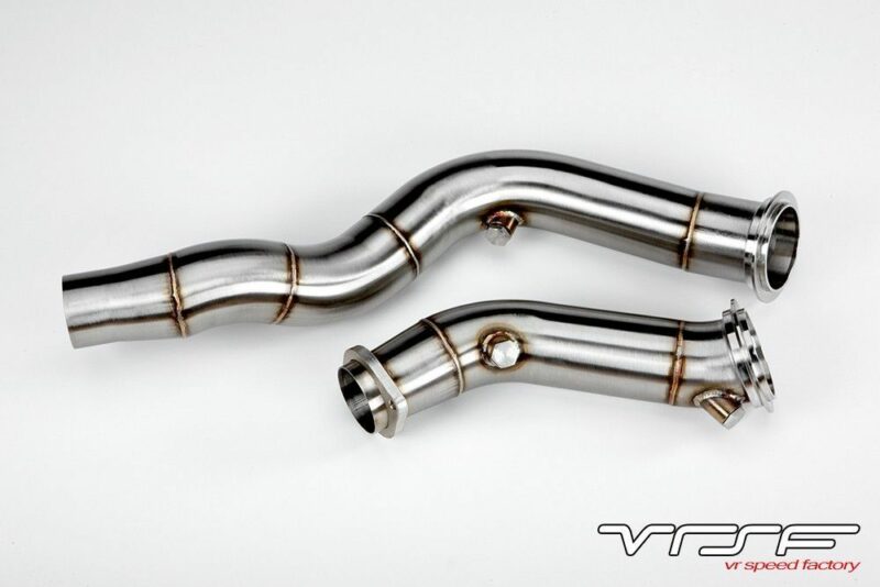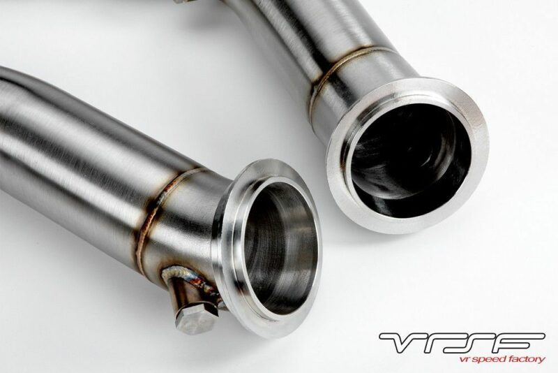Nous sommes fiers de vous présenter nos downpipes VRSF 3″ pour les S55 F80/F82/F87 M3, M4 et M2 Competition. Grâce à notre système de transition unique en acier inoxydable moulé entre la bride en V et le tube, ces downpipes 3″ offrent le meilleur rapport qualité-prix pour votre S55, avec un gain de puissance de 25 ch et 30 t/p une fois réglés. La suppression des catalyseurs restrictifs des downpipes d’origine réduit considérablement la contre-pression, ce qui se traduit par un embrayage plus rapide, une puissance accrue et une sonorité d’échappement plus agressive.