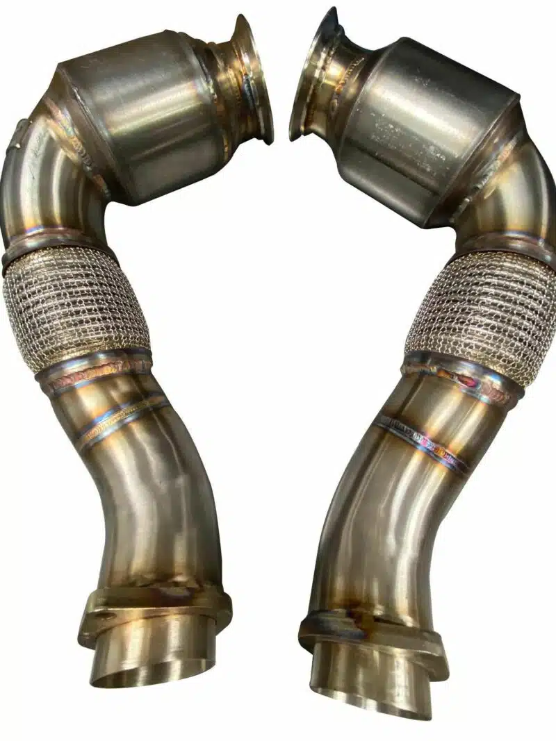 Active Autowerke est fier de vous proposer ses downpipes Signature S63/N63, fabriqués à la main, pour les modèles BMW X5M, X6M, 550i, 650i, X5 et X6 à moteur V8 biturbo. Veuillez noter que les véhicules à carrosserie G équipés du moteur N63B nécessiteront une version de downpipe différente. Si vous achetez un downpipe compatible avec les modèles à carrosserie F, il ne sera pas compatible avec votre véhicule. Active mène constamment des recherches et développements pour garantir un produit parfaitement adapté.